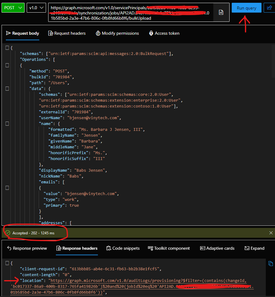 5. Test /bulkupload provisioning request with graph explorer.